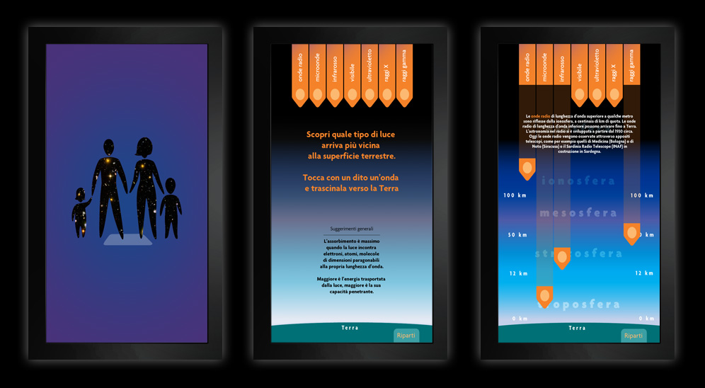 Astri e particelle // Interactive kiosks for the astronomy exhibition ( Concept, media design and development )